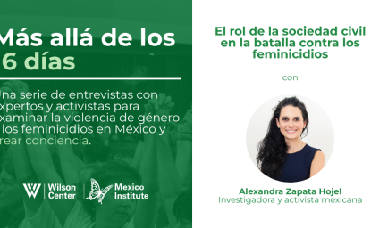 Ruth Fierro Pineda, es coordinadora del Centro de Derechos Humanos de las Mujeres de Chihuahua (CEDEHM). Ruth ha trabajado incansablemente para prevenir y combatir el feminicidio en el estado más grande de México. En esta entrevista con Cecily Fasanella del Wilson Center, realizada como parte de la serie del Instituto México, "Más allá de los 16 días", Ruth describe cómo la creación de una cultura antifeminista está ayudando a salvar la vida de las mujeres en todo el país.